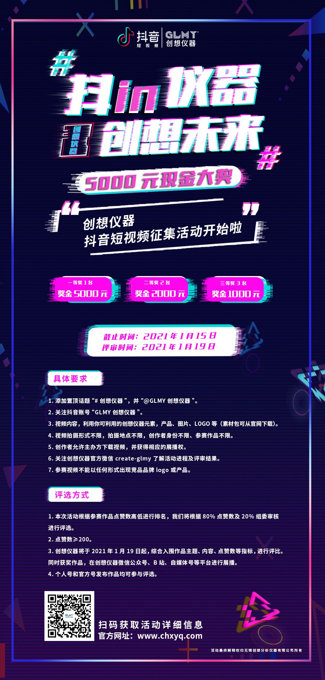 從即日起截止至2021年1月15日,參與“創(chuàng)想儀器”主題話題活動(dòng),只要你贏得最高點(diǎn)贊數(shù),就有機(jī)會(huì)贏取5000元大獎(jiǎng)。